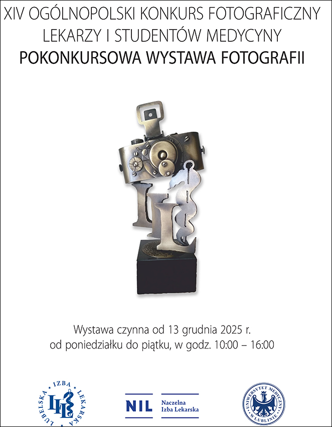 Lubelska Izba Lekarska i Uniwersytet Medyczny w Lublinie we współpracy z Lubelskim Towarzystwem Fotograficznym i Związkiem Polskich Artystów Fotografików Okręg Lubelski ogłaszają XIV Ogólnopolski Konkurs Fotograficzny Lekarzy i Studentów Medycyny.