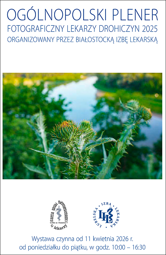 Komisja Kultury Lubelskiej Izby Lekarskiej zaprasza 11 kwietnia 2026 r. o godz. 12:00 do Galerii Sztuki Nieprofesjonalnej „U lekarzy”, (Klub Lekarza, Lublin, ul. Chmielna 4), na otwarcie wystawy poplenerowej Ogólnopolskiego Pleneru Fotograficznego Lekarzy Drohiczyn 2025, organizowanego przez Białostocką Izbę Lekarską.